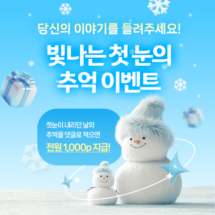곧 내릴 첫눈을 기다리며 댓글을 달아주시는 모든 분들께 선물을 드리는 이벤트를 준비했어요.
