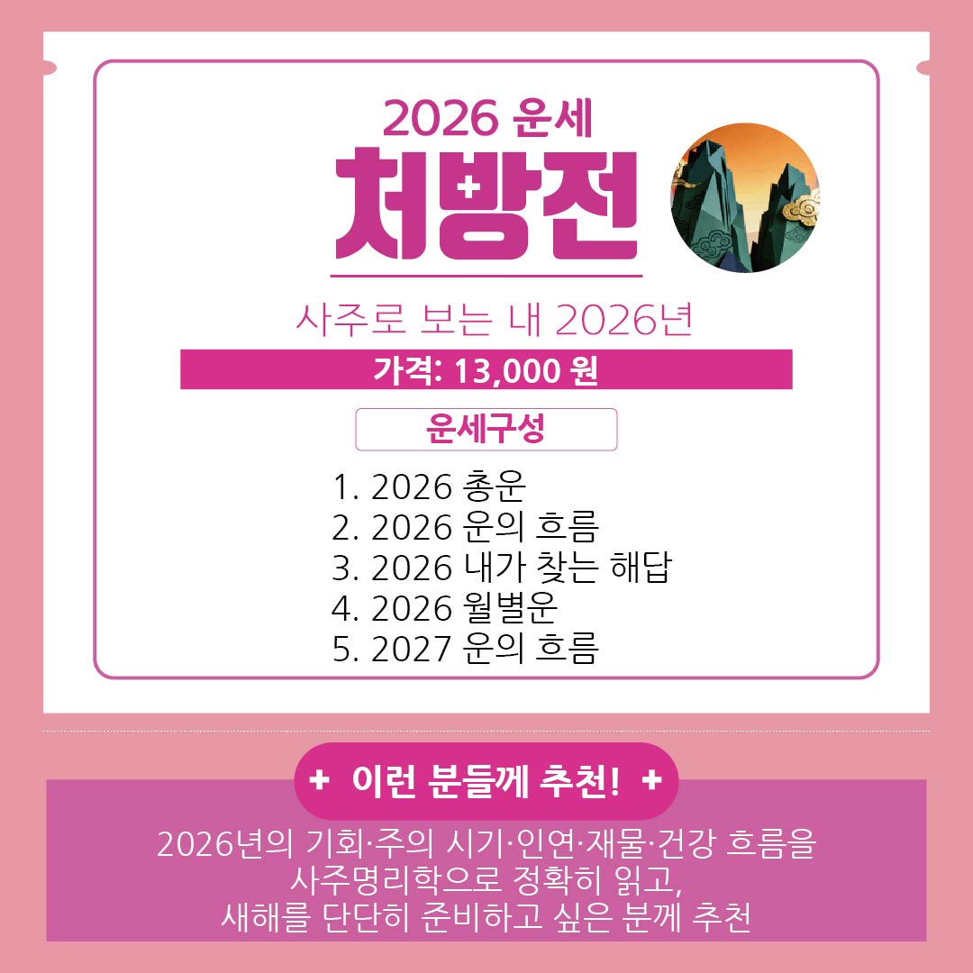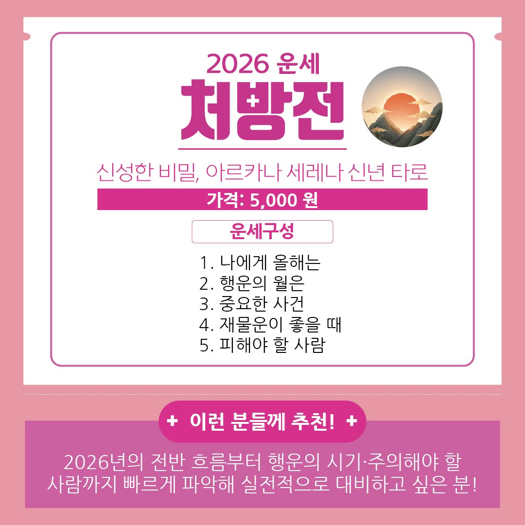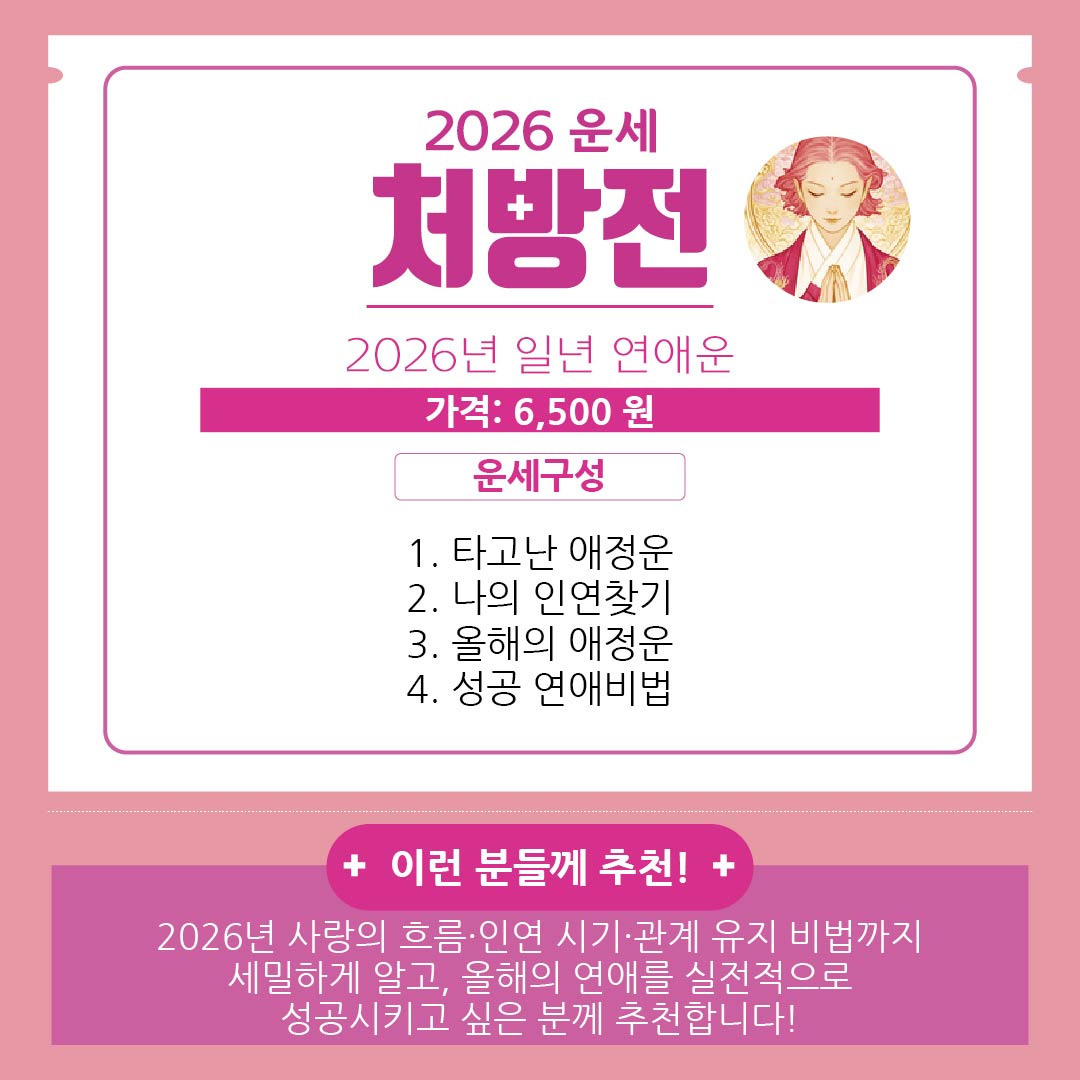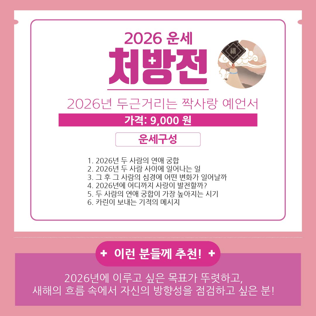 지금 바로 2탄 처방전으로 나에게 제대로 맞는 운세를 선택해보세요!