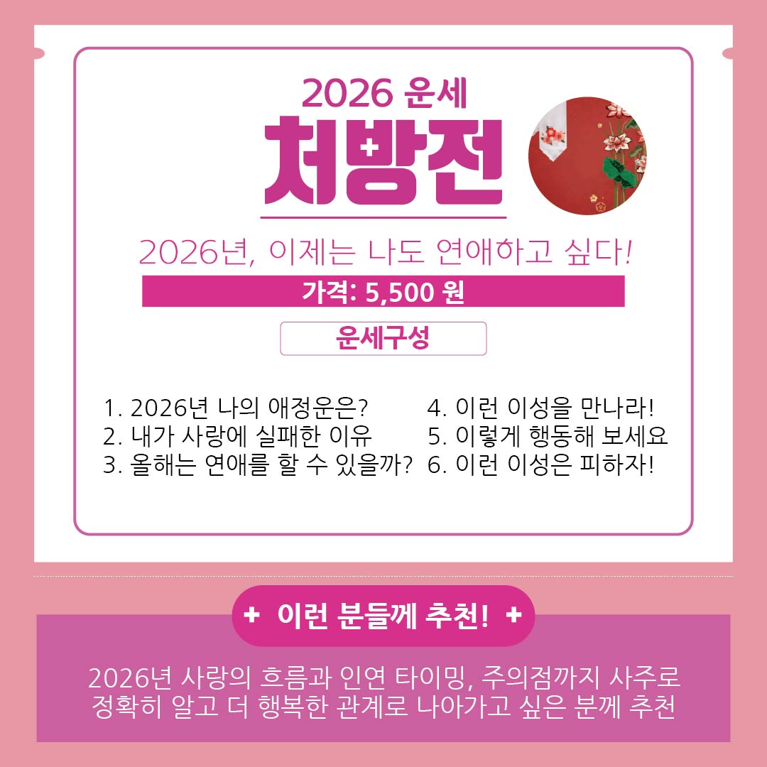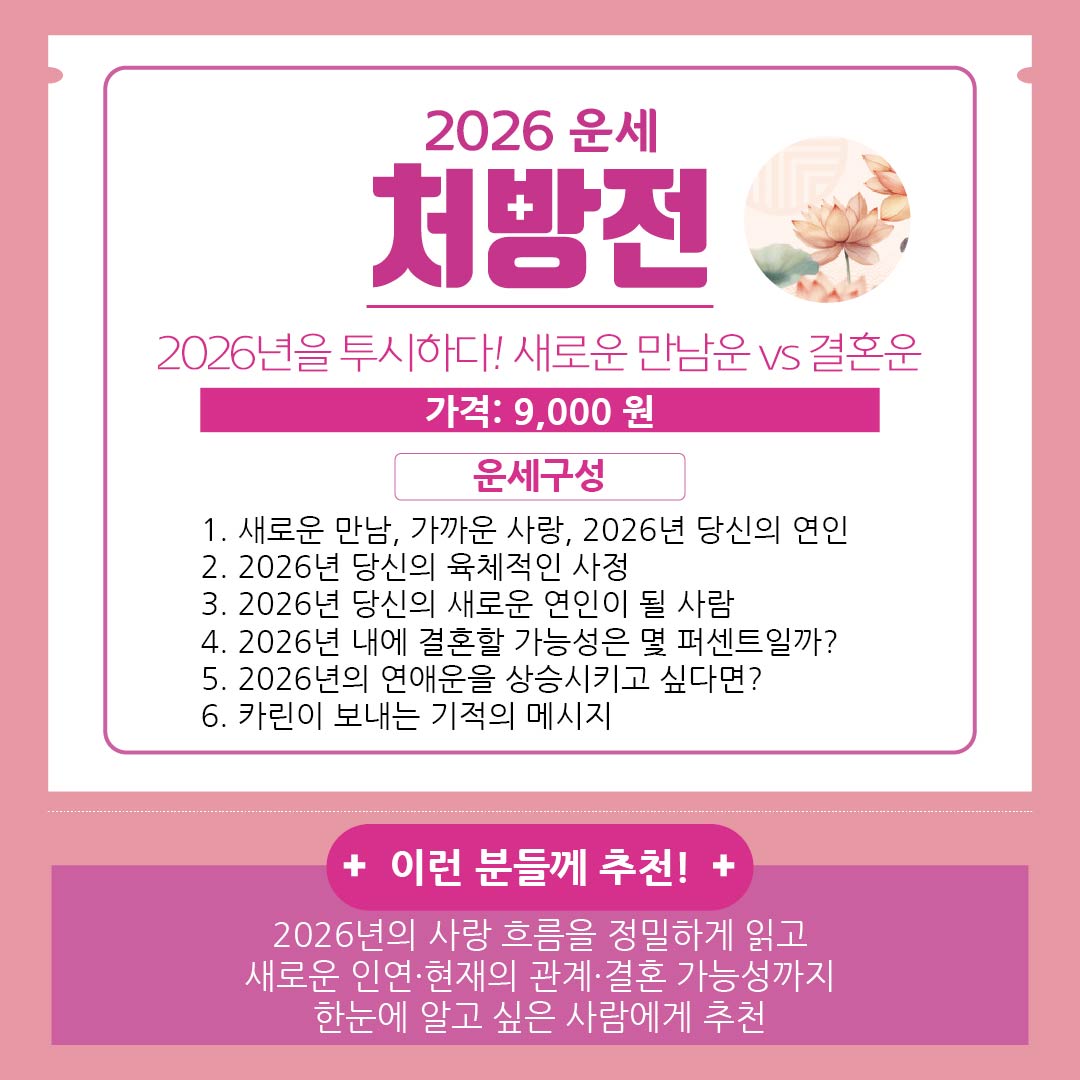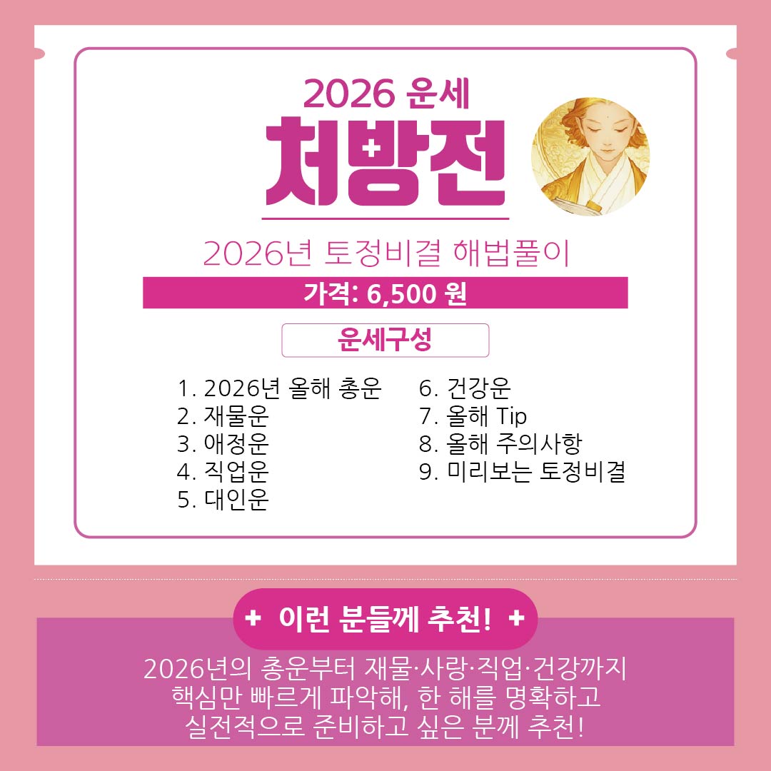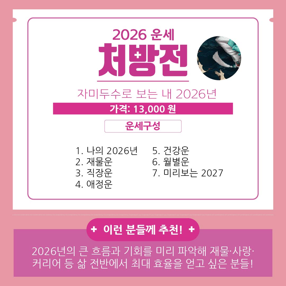 지금 바로 2탄 처방전으로 나에게 제대로 맞는 운세를 선택해보세요!