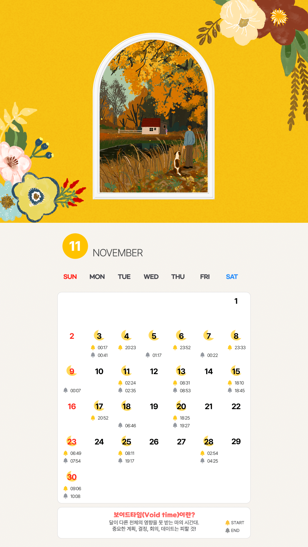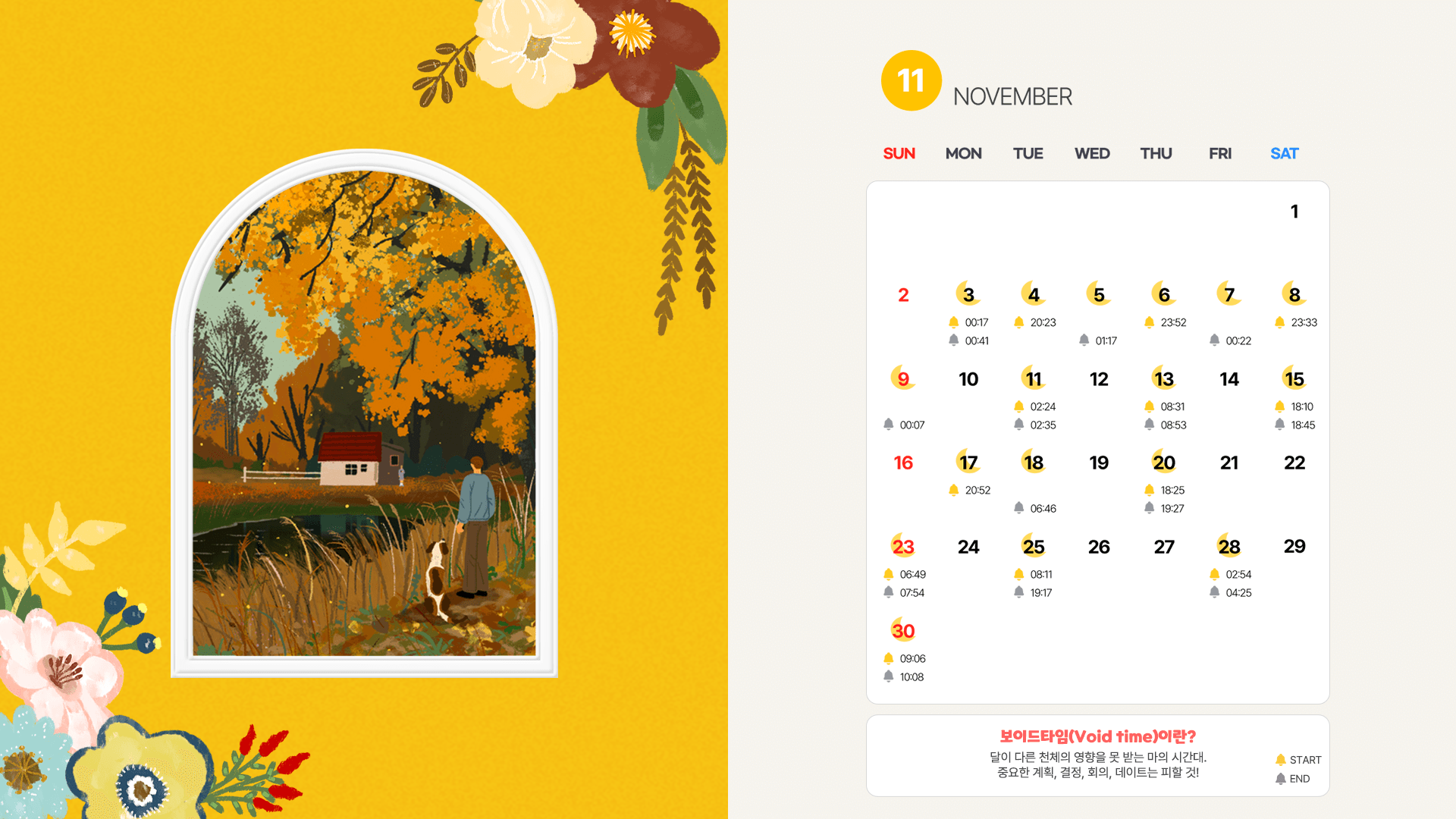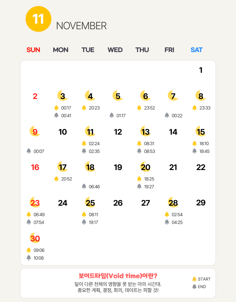 PC와 모바일 배경화면으로 설정하시고, 매일 보이드타임을 확인해보세요.