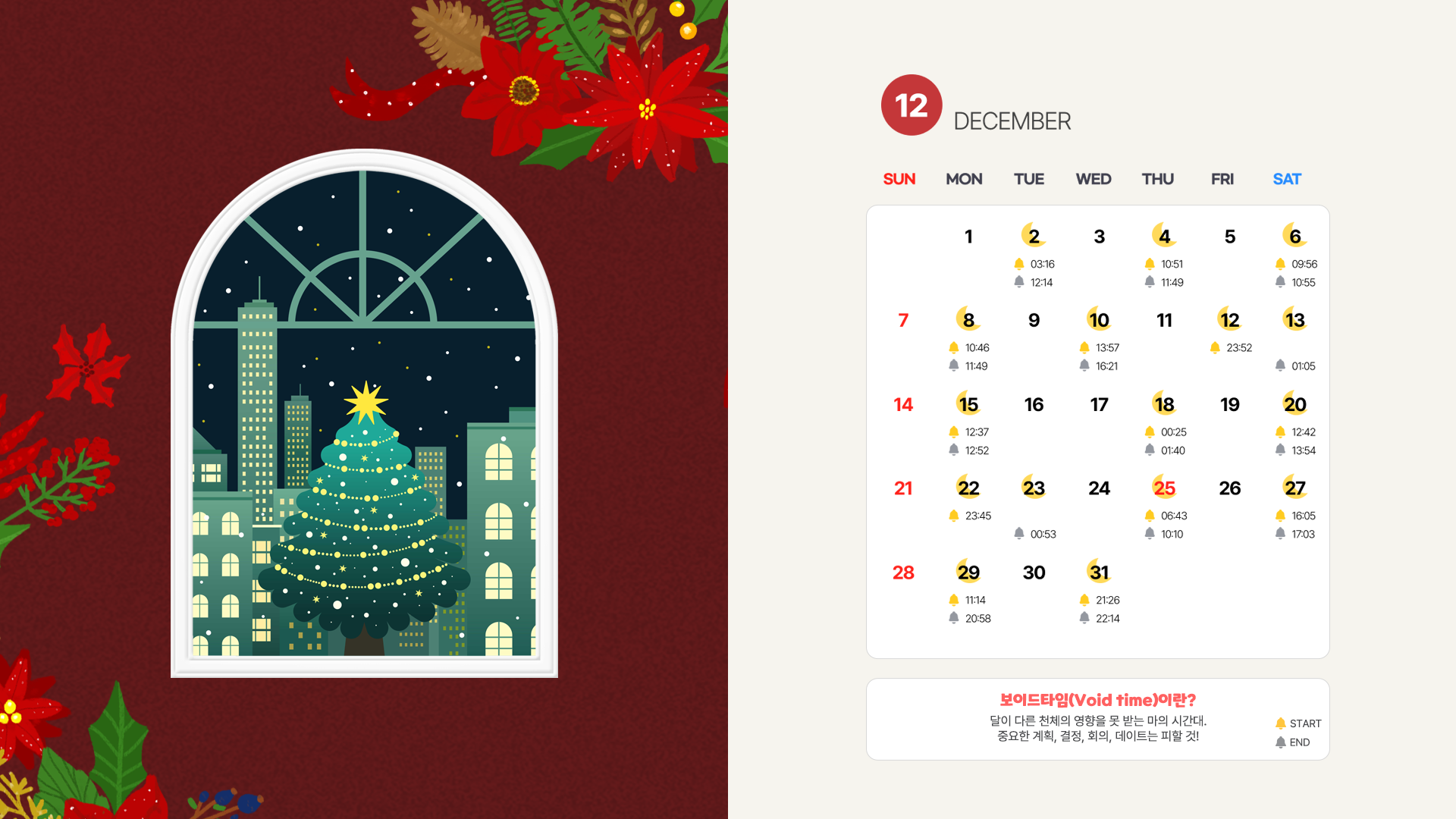 PC와 모바일 배경화면으로 설정하시고, 매일 보이드타임을 확인해보세요.
