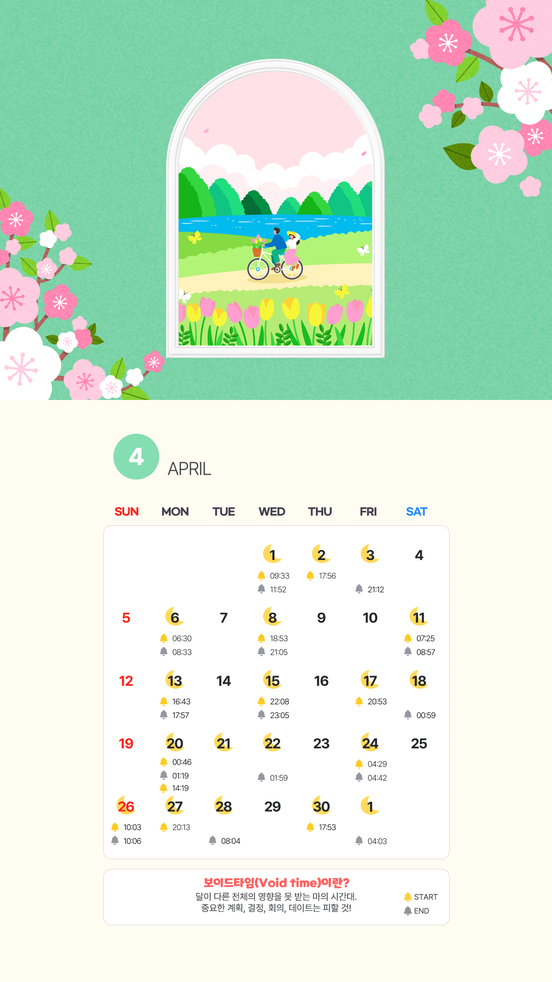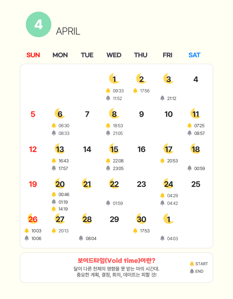 2026년 4월 보이드 타임 캘린더
