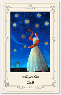 염소자리의 타로카드는 '코인 9' 입니다. 미래에 대한 희망과 통찰력을 나타내는 카드입니다.
