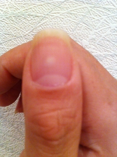 손톱의 하얀 점은 손톱이 자라면서 위로 이동하기 때문에, 이