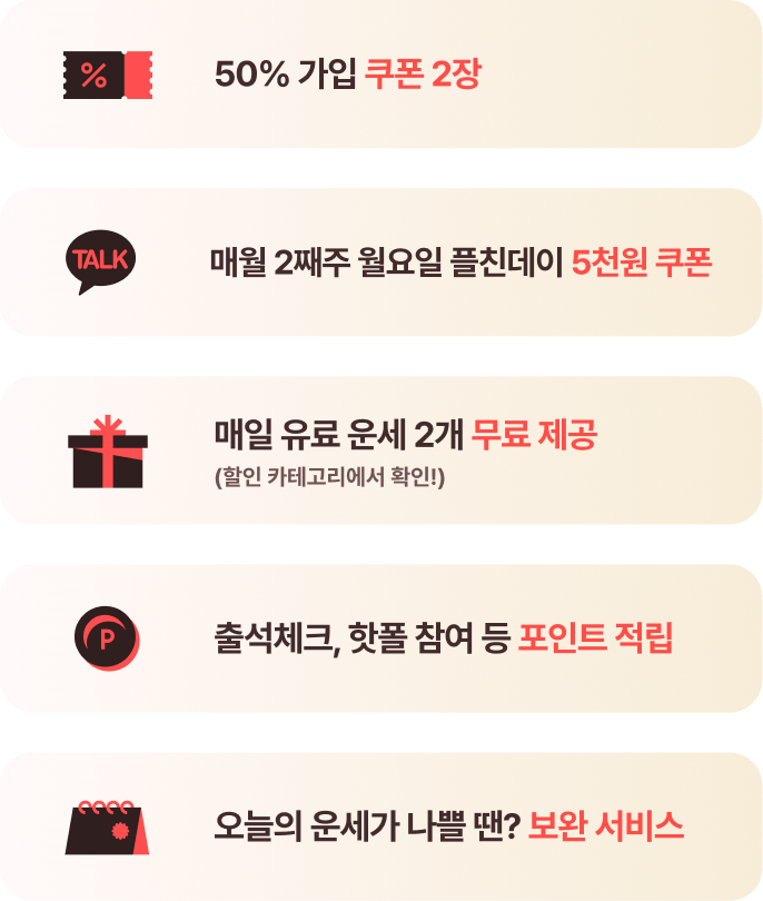 매일 유료 운세 2개 무료 제공 (할인 카테고리에서 확인!)