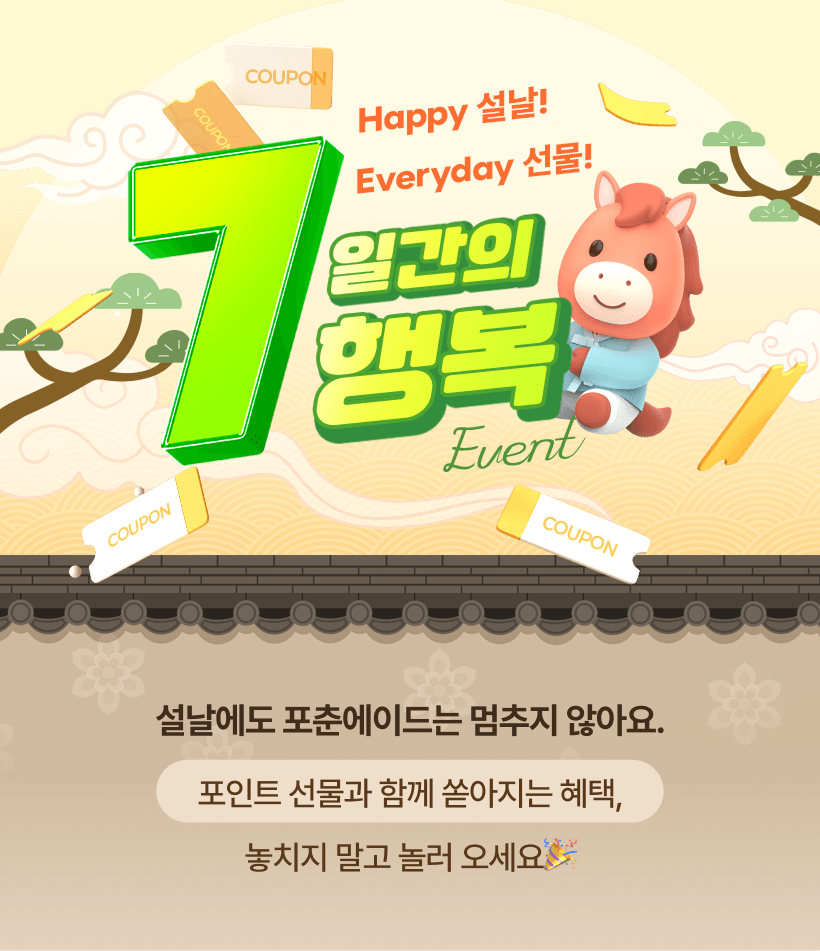 이벤트 이벤트 Hot Poll 무료 감정 출석체크 Happy 설날! Everyday 선물! 7일간의 행복 EVENT 설날에도 포춘에이드는 멈추지 않아요. 포인트 선물과 함께 쏟아지는 혜택, 놓치지 말고 놀러 오세요 02/13 7일간의 행복 시작! 첫날엔 크게 드려야겠죠?!5천원 이상 3천원 쿠폰 받아가세요 COMMING SOON! COMMING SOON! COMMING SOON! COMMING SOON! COMMING SOON! COMMING SOON!